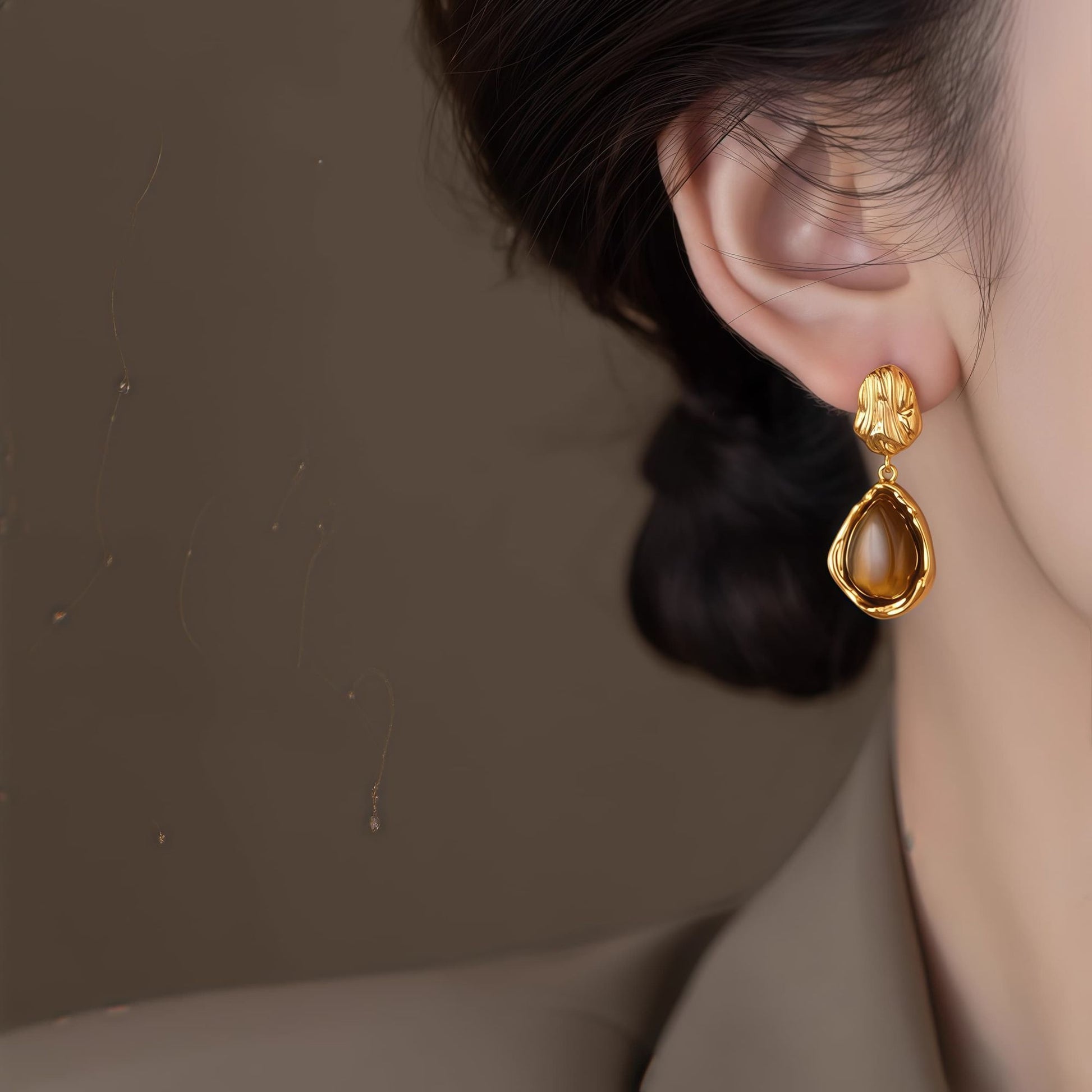 2026 New Vintage Tiger's Eye Dangle Earrings For Women, Luxury Elegant Hong Kong Style Unique Design Fashion Earrings