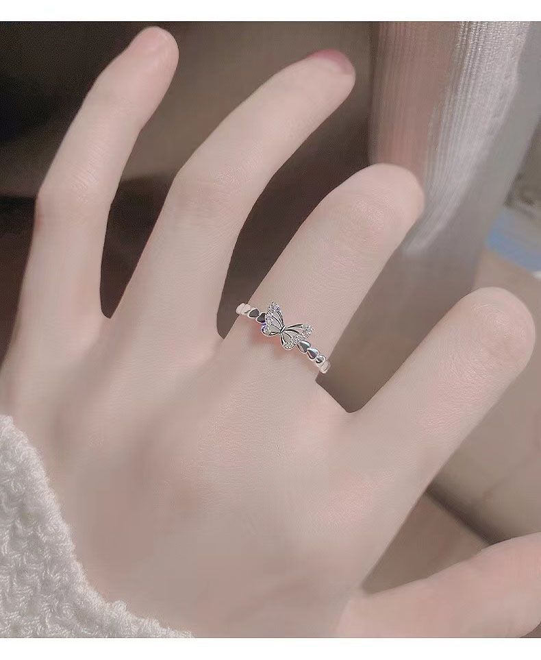 Butterfly Zircon Ring Womens Pinky Ring Niche Design Light Luxury